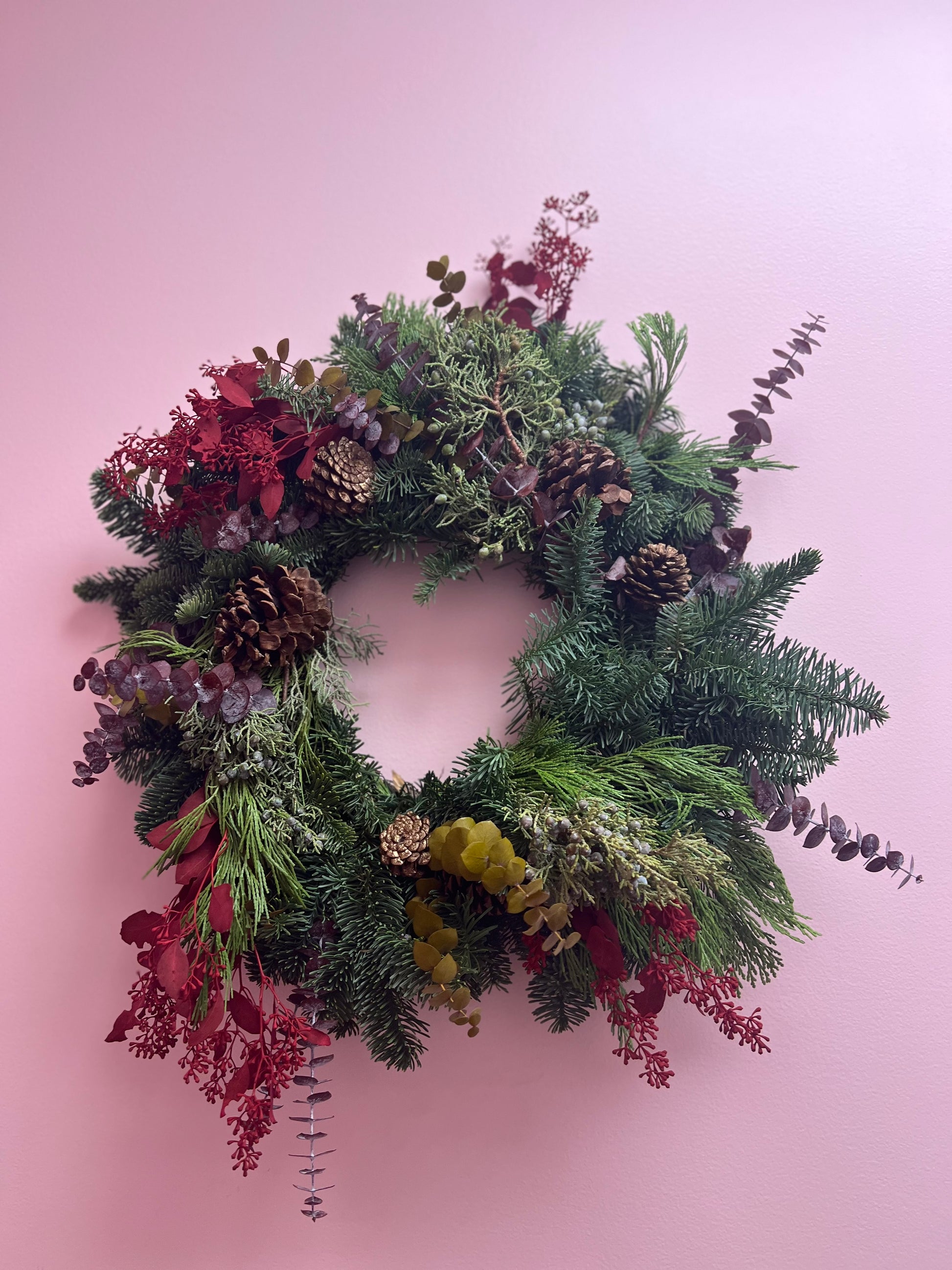 Welcome the season with a handcrafted, fresh and fragrant holiday wreath — made with love and ready to grace your front door. Each wreath is designed with lush mixed Christmas greens and comes with a custom ribbon that can feature your family name, a favorite Scripture, or a meaningful saying to make it truly your own.