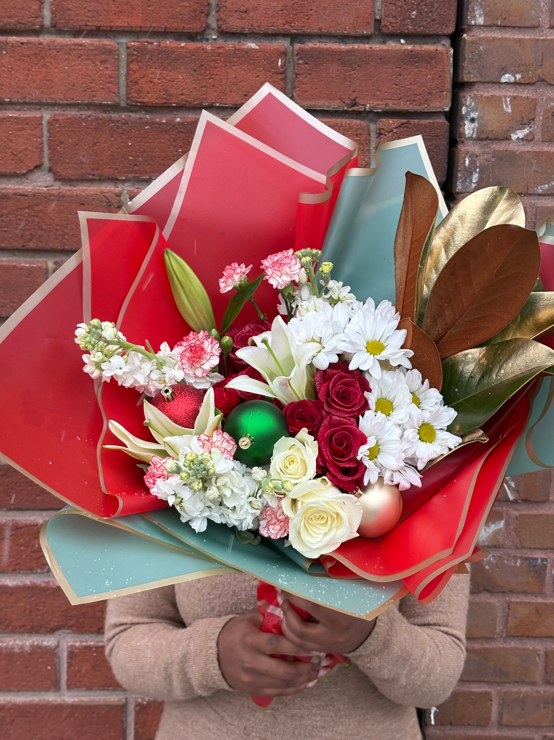 Let us surprise you with The Creator’s Touch — a faith-filled, Christmas-themed designer’s choice bouquet made with fresh seasonal blooms and our signature festive flair.